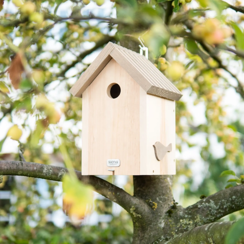 Familienglück | Mit diesem Nistkasten lockst du dir eine Vogelfamilie in den Garten. Das Vogelhaus bietet den Tieren einen geschützten Unterschlupf und einen Brutplatz, um neuen Nachwuchs heranzuziehen.