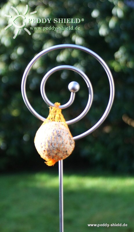 Premium Rankstab mit Kugel in der Form einer Schnecke, als Zierstab, Rankhilfe, Futterplatz für Vögel.