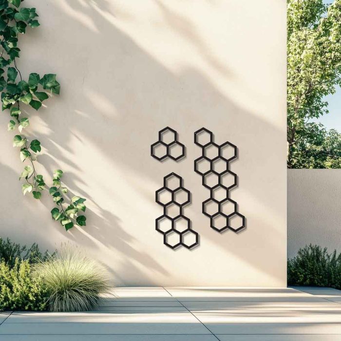 Das Rankgitter HONIG überzeugt mit seiner geometrischen Wabenstruktur und bringt modernes Design an die Wand. Die klare, sechseckige Form erinnert an Bienenwaben und setzt stilvolle Akzente an Hauswänden, Zäunen oder im Innenbereich. Ob als klassische Rankhilfe für Kletterpflanzen oder als dekoratives Wandtattoo außen – das Pflanzgitter bietet viele Einsatzmöglichkeiten.