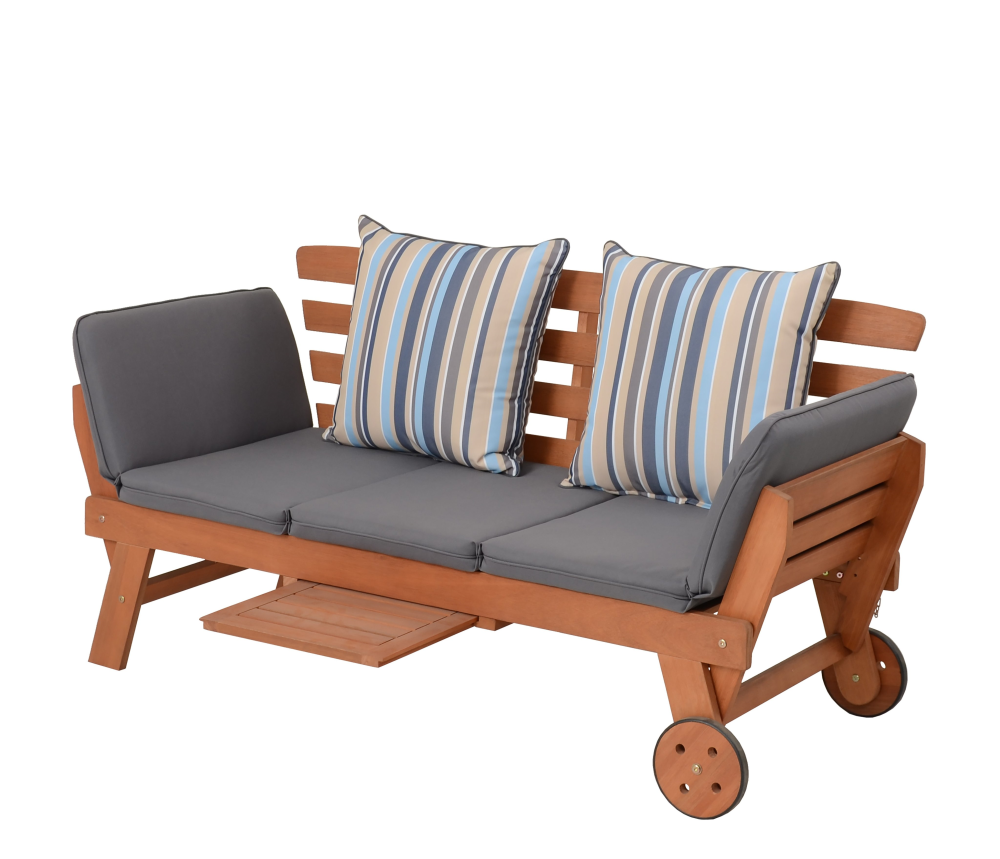 RINCON Funktionssofa aus FSC® Eukalyptusholz – mit Auflage & Ausziehtisch