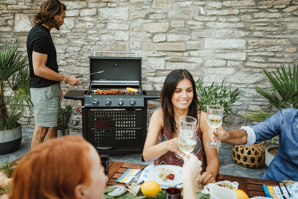 4 Edelstahlbrenner für kraftvolles direktes und indirektes Grillen/ Backen