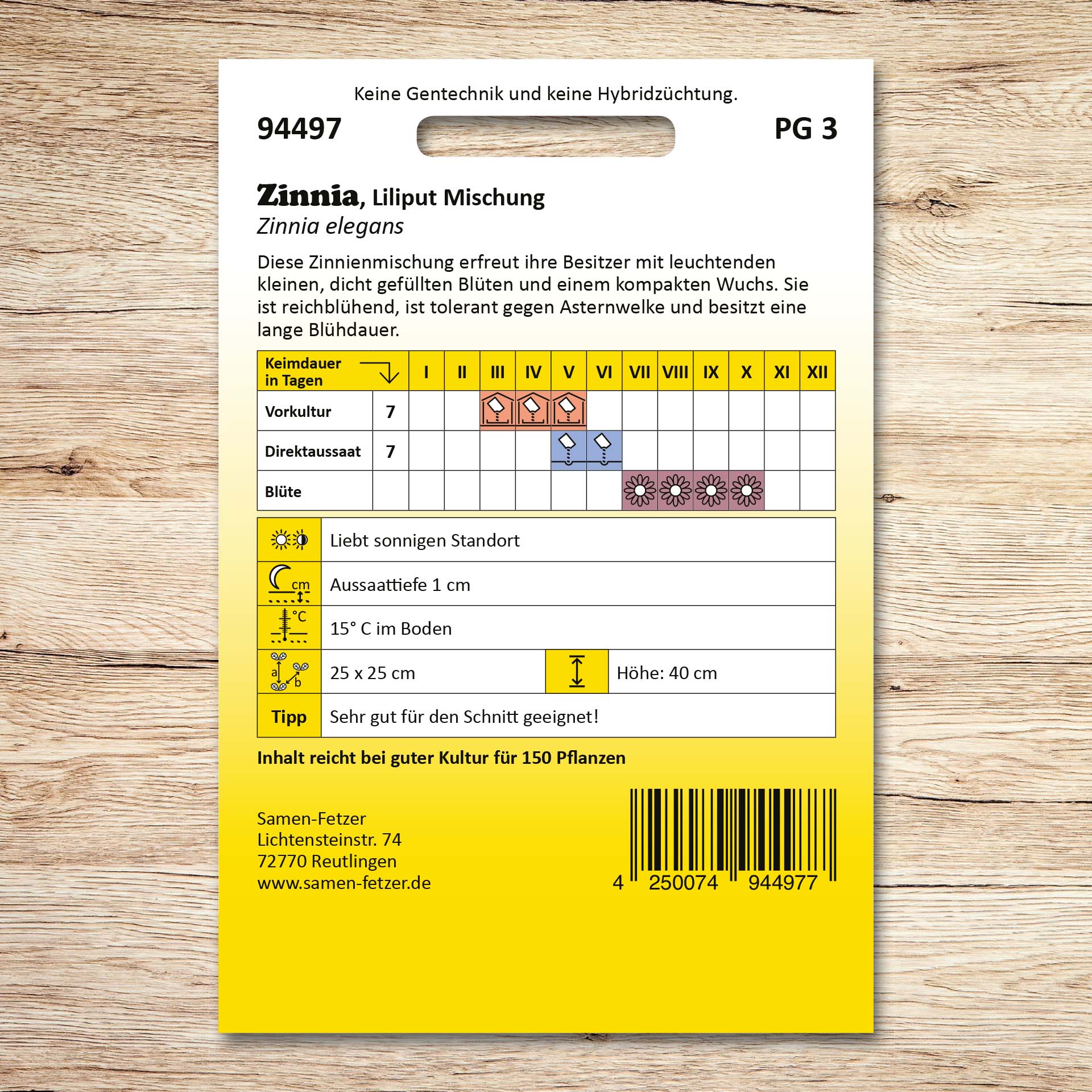 | Inhalt ausreichend für: | 150 Pflanzen |