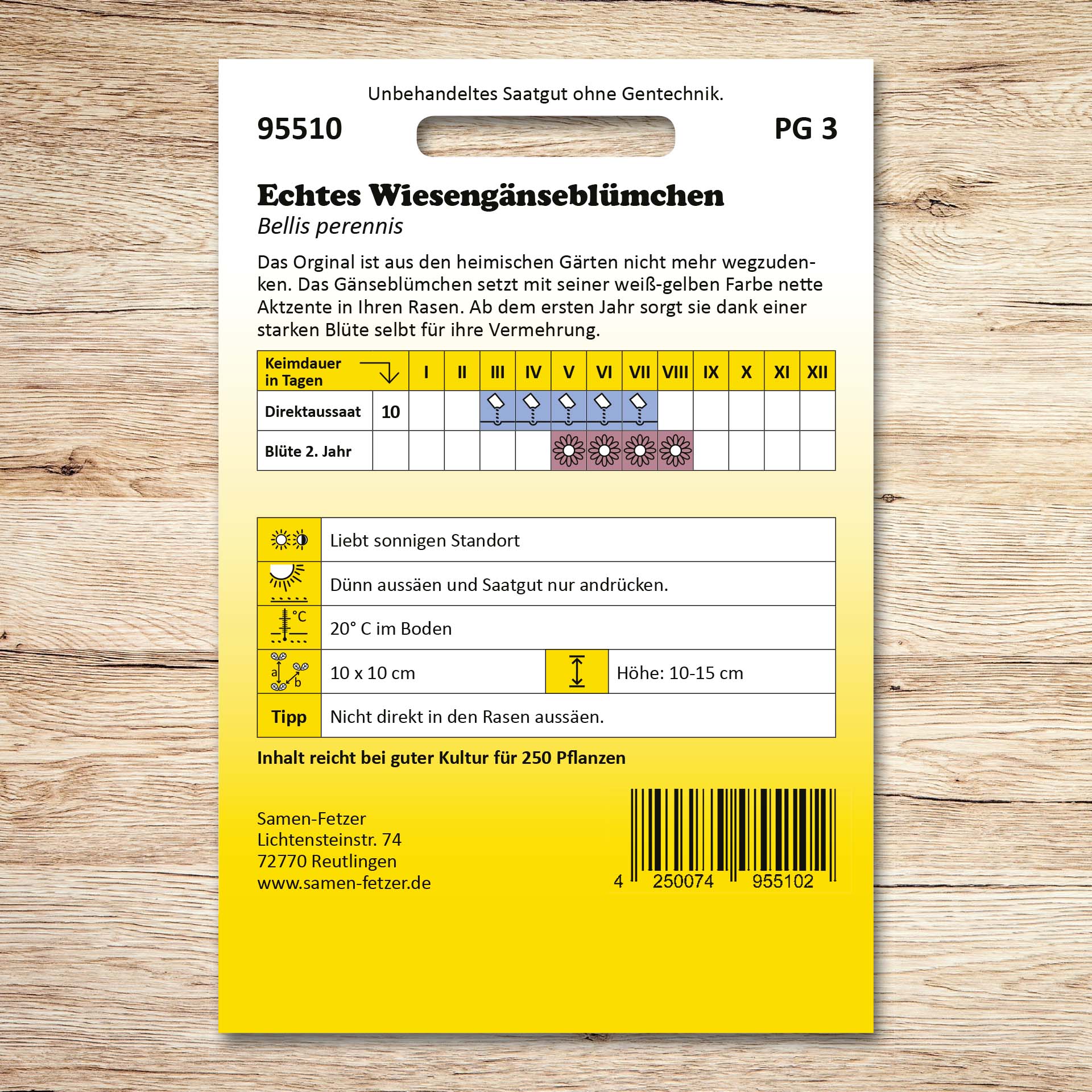 | Inhalt ausreichend für: | 250 Pflanzen |