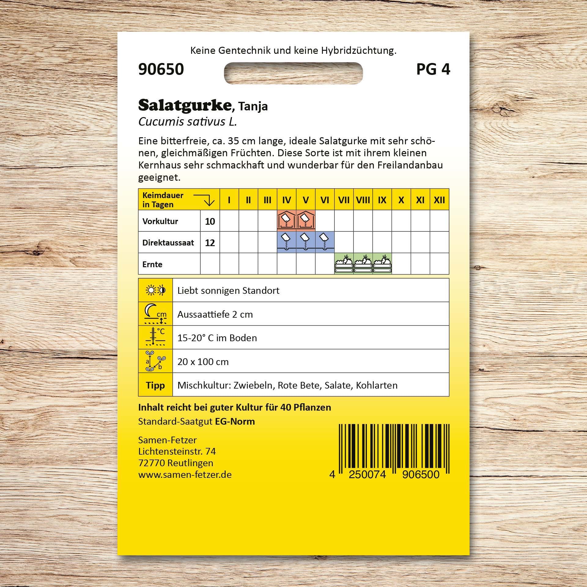 Die Freilandgurke „Tanja“ ist eine bitterfreie, ideale, ca. 30 cm lange Salatgurke mit sehr schönen, gleichmäßigen Früchten. Diese Freilandgurkensorte besitzt ein kleines Kernhaus und ist eine sehr schmackhafte Salatgurke! Pflanzen Sie diese Gurke in einer Mischkultur mit Zwiebeln, Rote Rüben, Salate, Kohlarten etc. an. Mit dem Anbau dieser historischen Gurkensorte unterstützen Sie die Erhaltung der Sortenvielfalt.
