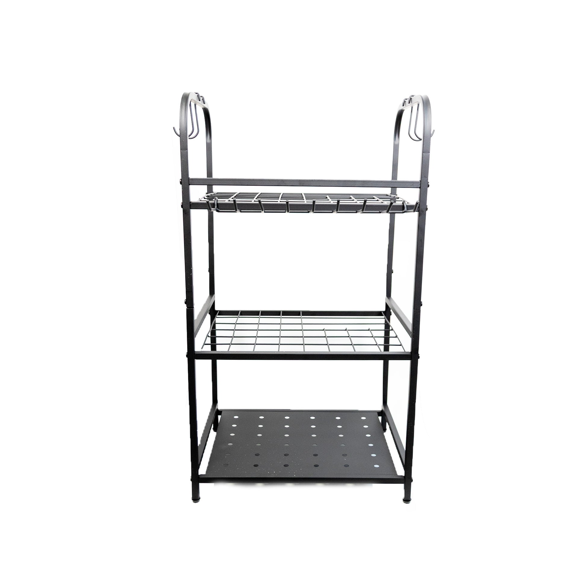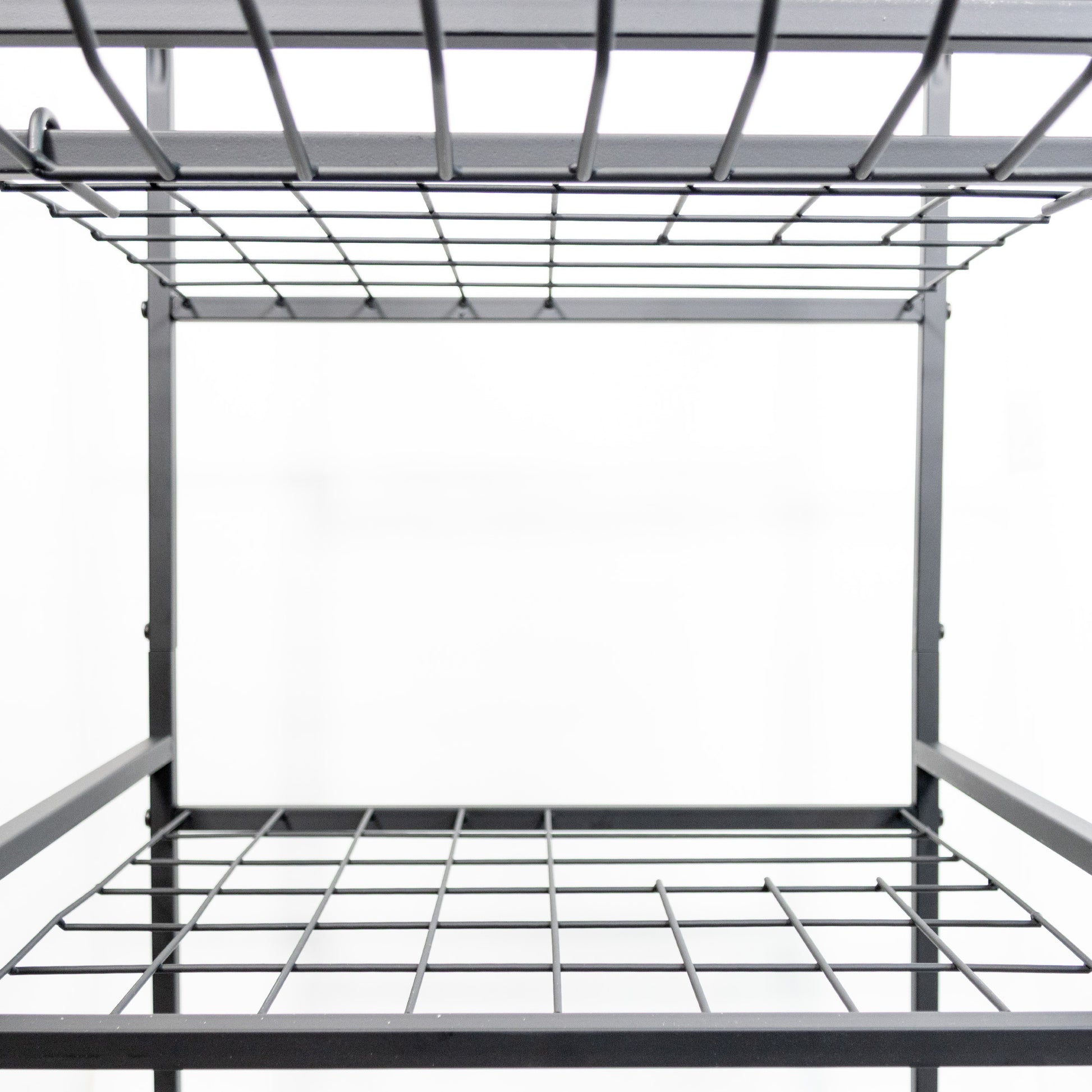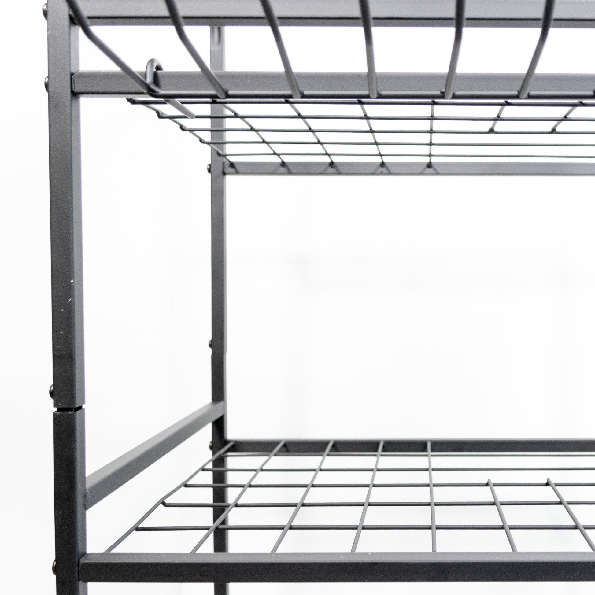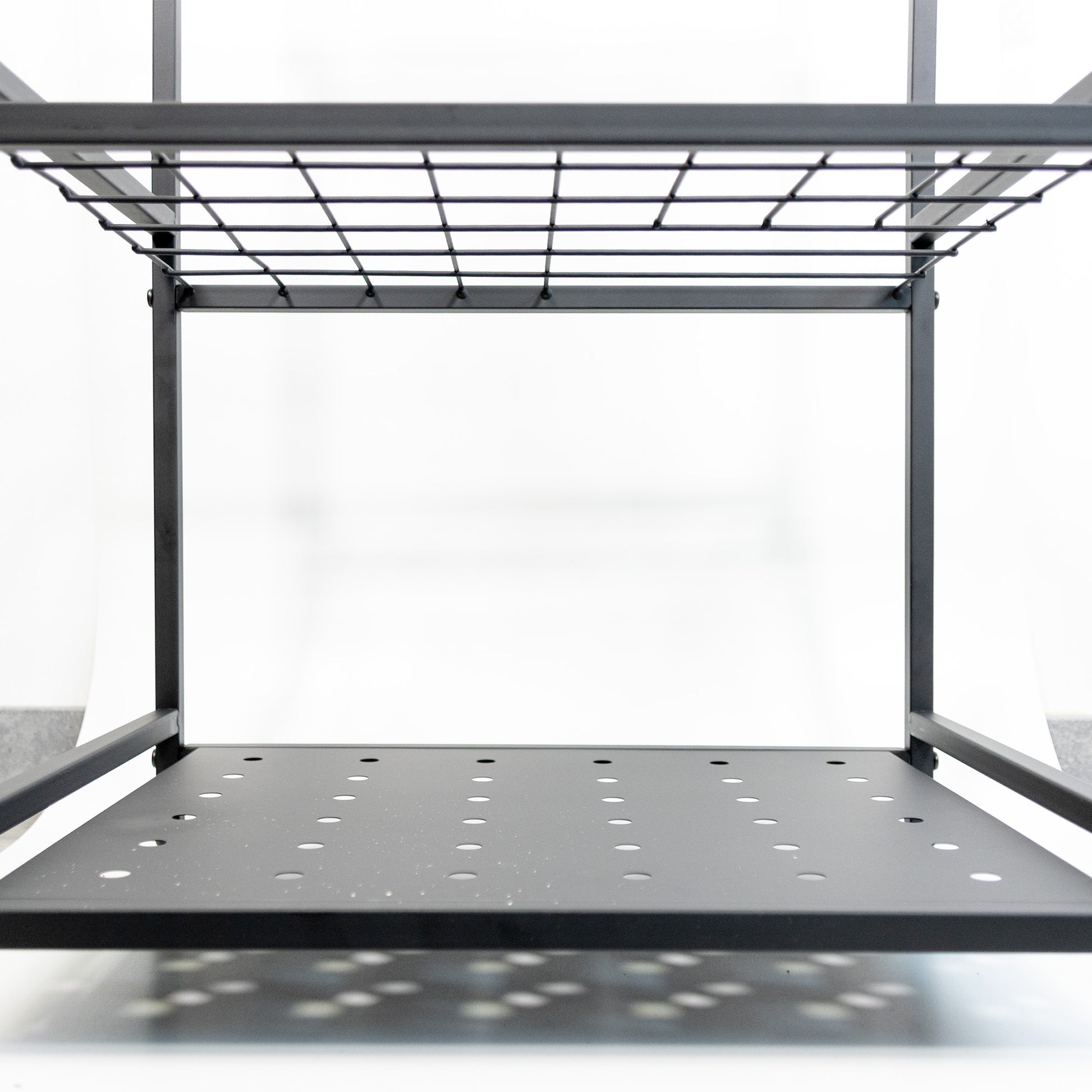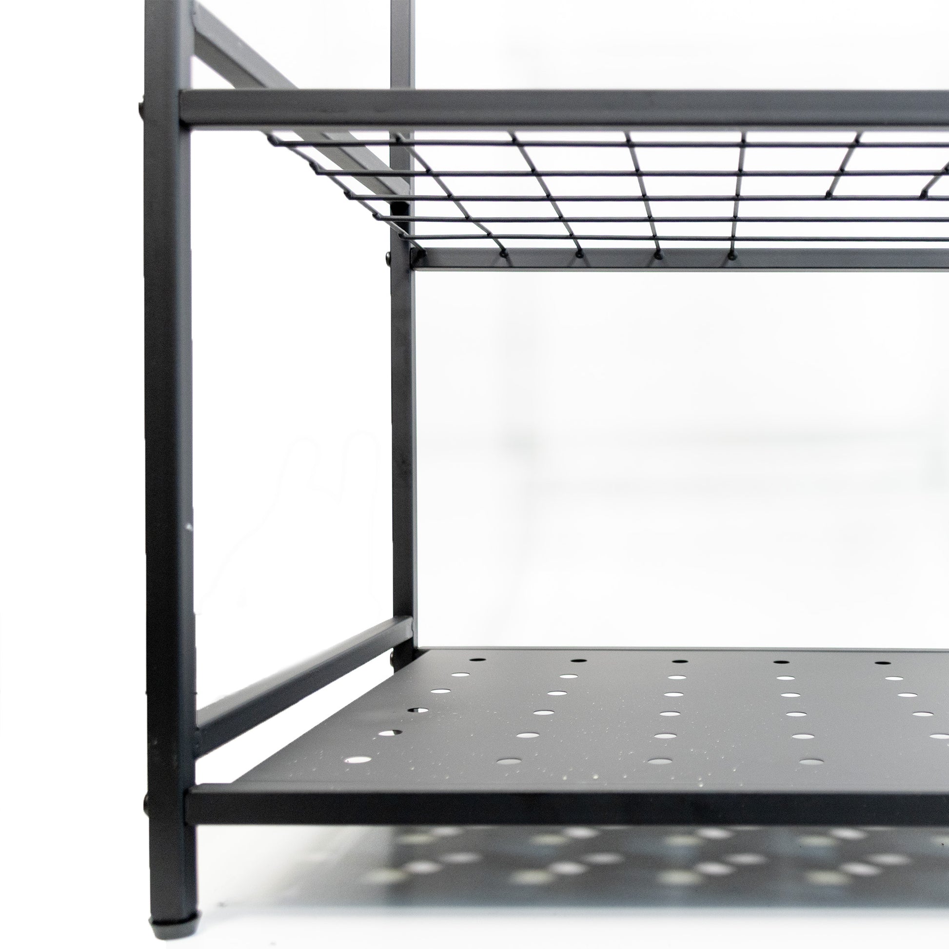Die schwarze Ausführung verleiht dem Regal eine moderne, schlichte Optik, die sich problemlos in jede Umgebung einfügt – egal ob im Innen- oder Außenbereich. Das robuste Material ist langlebig und für den täglichen Einsatz bestens geeignet.
