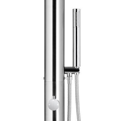 Diese Außendusche besteht aus Edelstahl und ist somit witterungsbeständig. Das Duschsystem verfügt über eine Kopfdusche und eine Handbrause, um Ihren Anforderungen an Gartenarbeit, Bewässerung und schnelles Duschen gerecht zu werden. Die Handbrause verfügt über einen doppelt verriegelten flexiblen Schlauch mit einer Länge von 1,5 m. Es ist auch mit einem Messing-Handbrausenhalter ausgestattet.