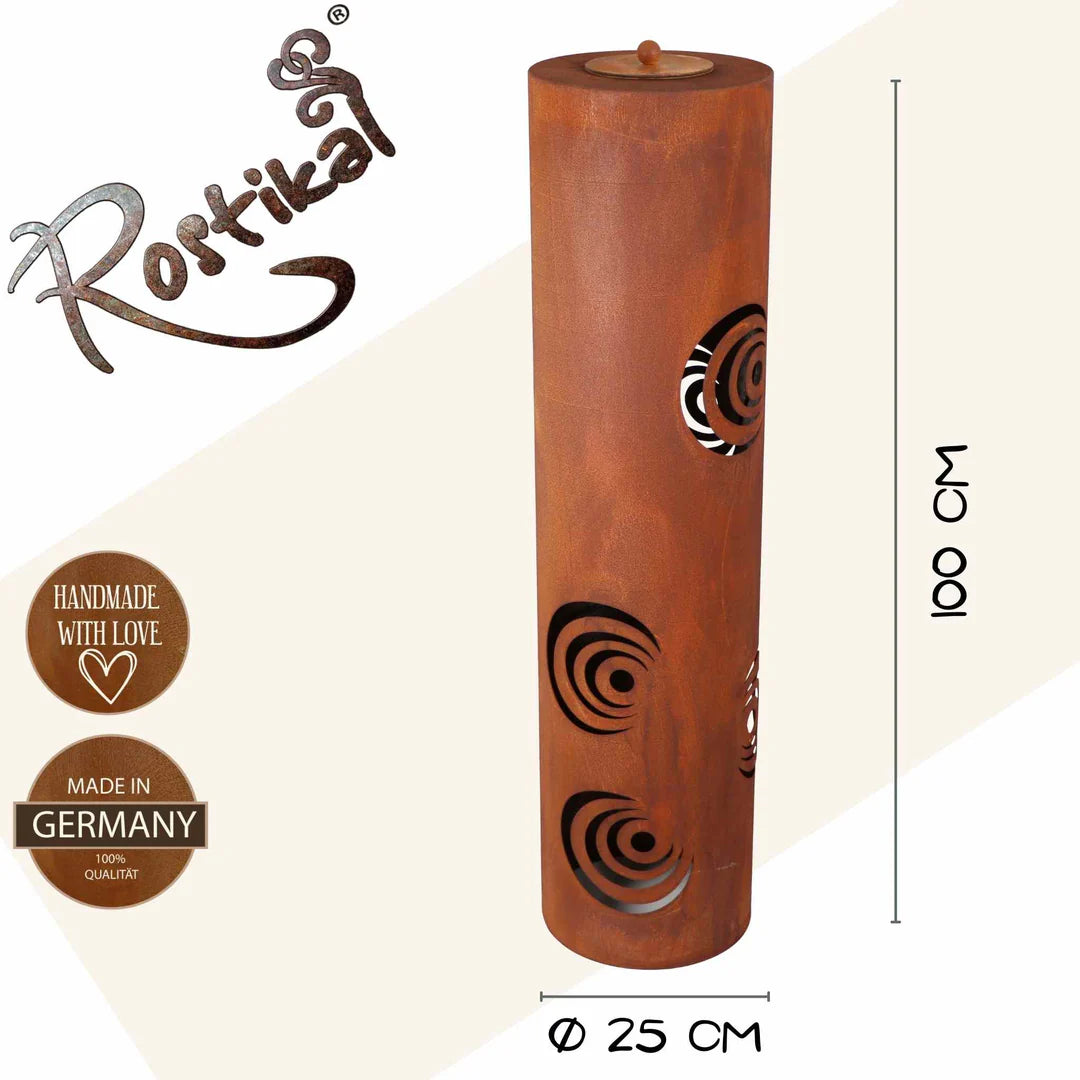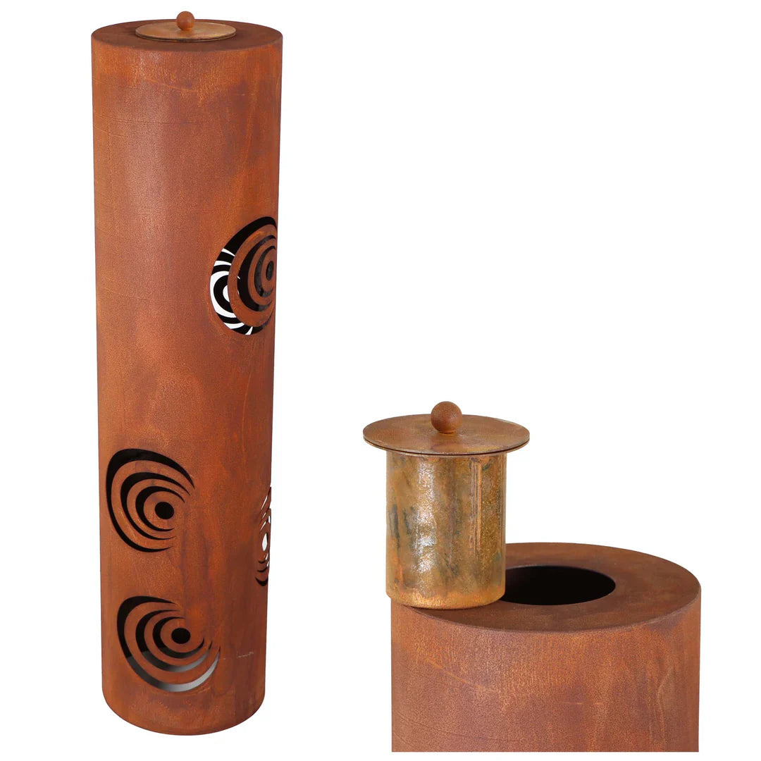 Handgefertigte Gartendeko Metall Feuersäule in authentischer Edelrost-Optik