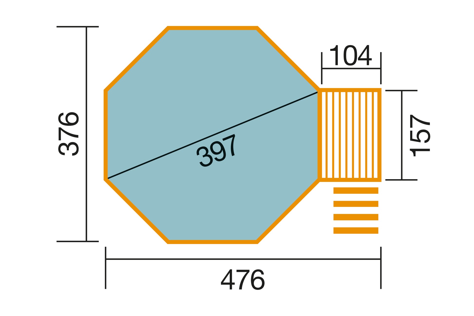 Sockelmaß: 476cm Breite x 376cm Tiefe