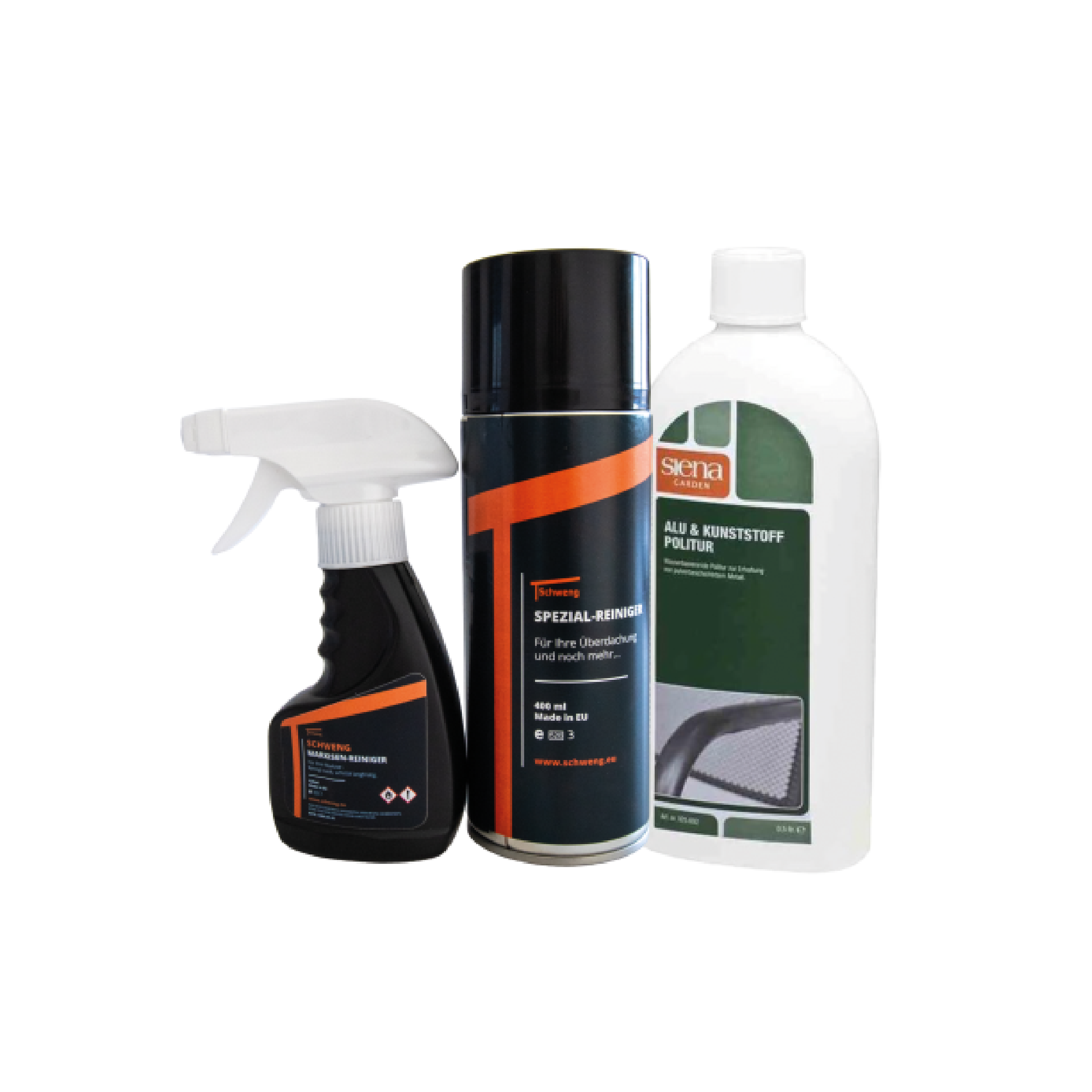 Das Schweng Universalreinigungsset kombiniert drei leistungsstarke Spezialprodukte für eine gründliche, materialschonende und nachhaltige Reinigung rund ums Haus, im Garten oder auf dem Campingplatz. Ob pulverbeschichtetes Aluminium, Fliesen oder empfindliche Markisenstoffe – mit diesem Set sind Sie optimal ausgestattet.